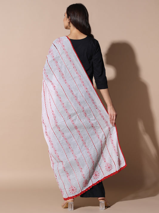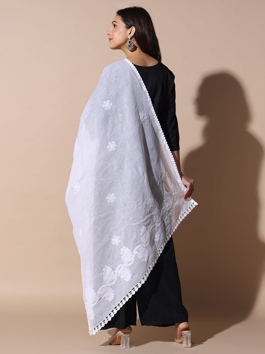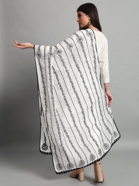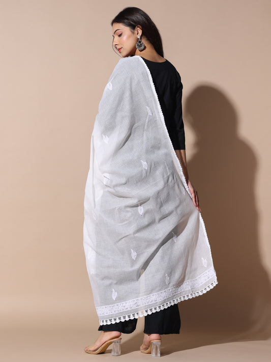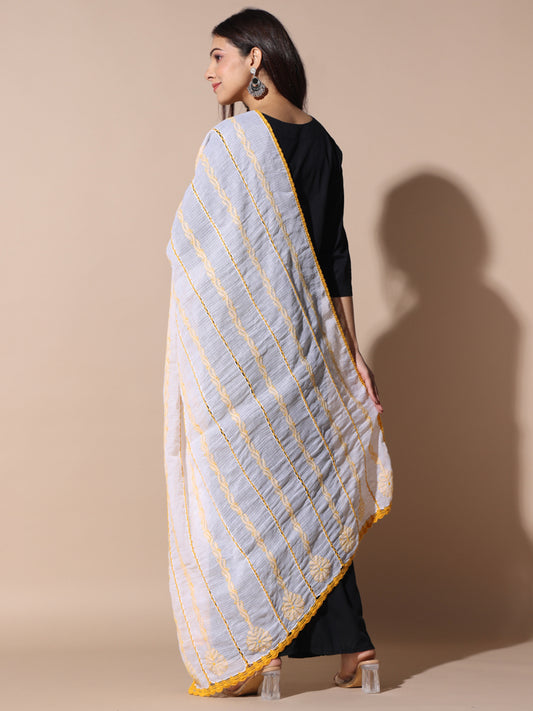 Soft Mulchanderi Silk Dupatta with Fine Chikan Mukaish Golden Taar Hand Embroidery