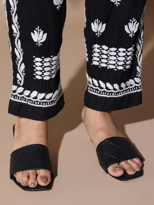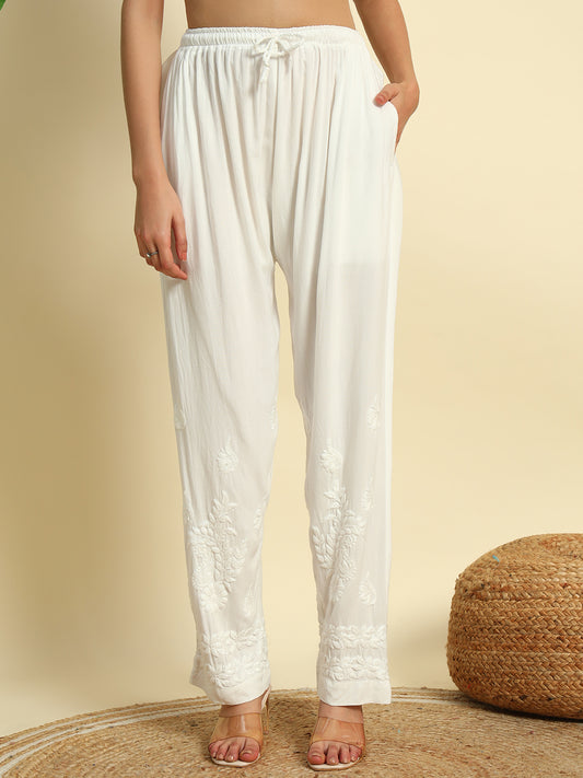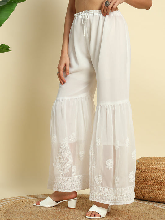 Full & Fine Lucknowi Chikan Hand Embroidered Plazzos,