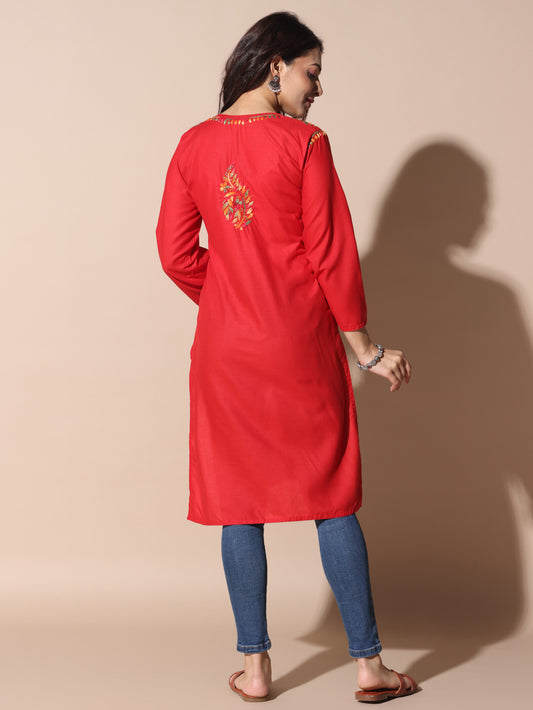 Cotton Rayon Short Red Kurti for Women