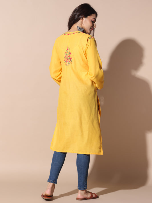Cotton Rayon Short Mustard Kurti for Women