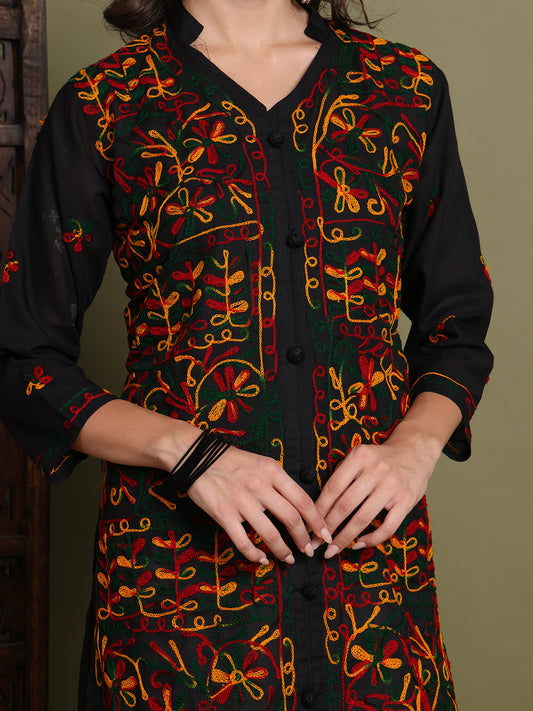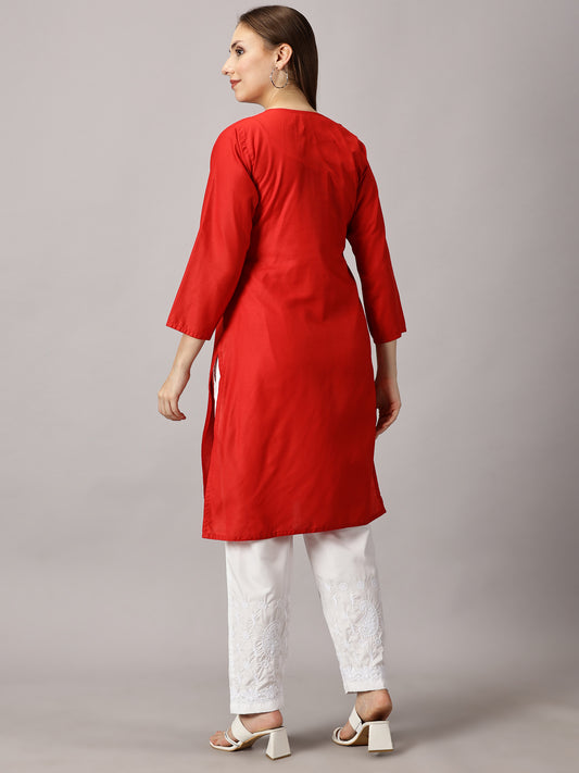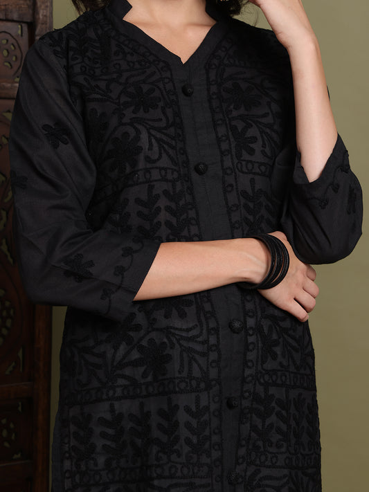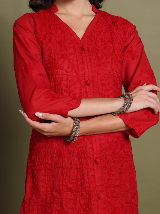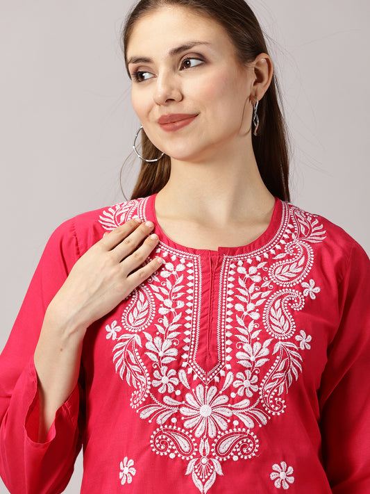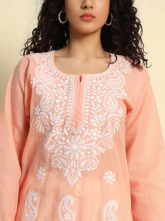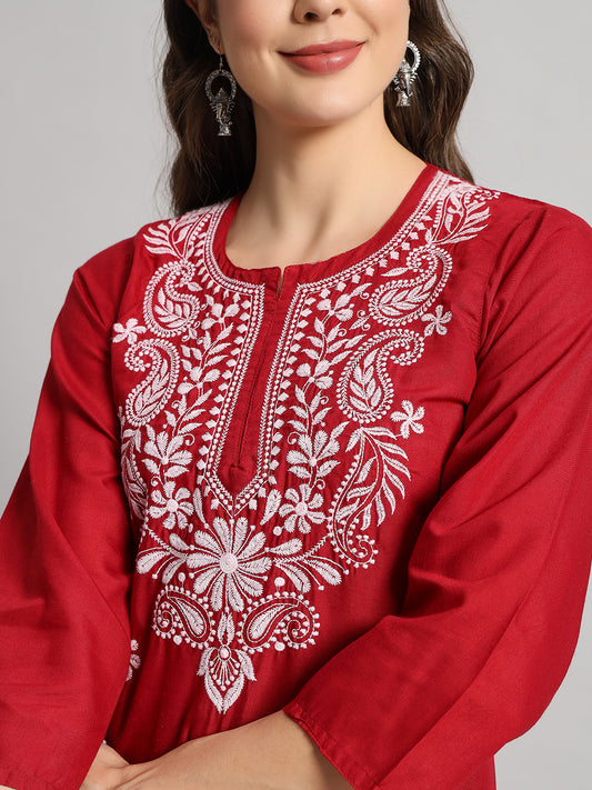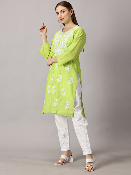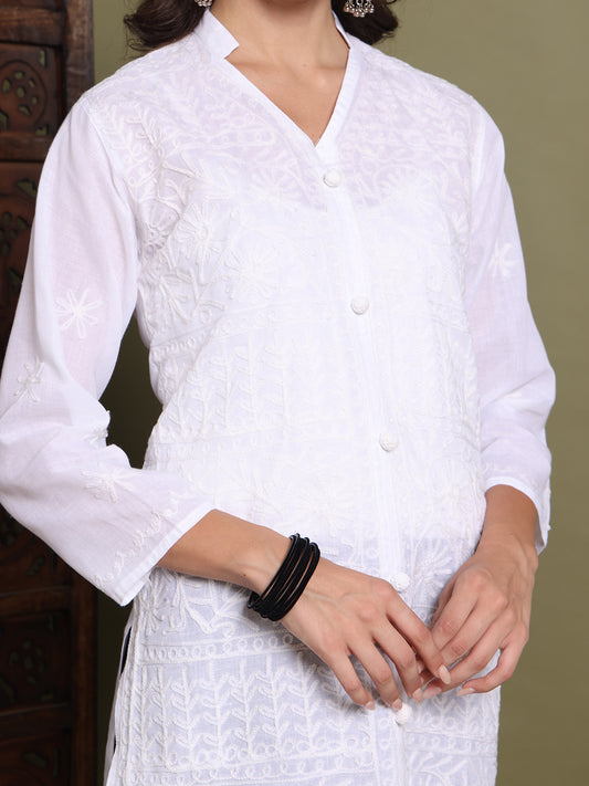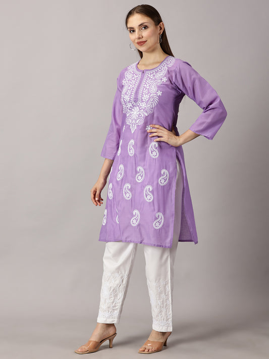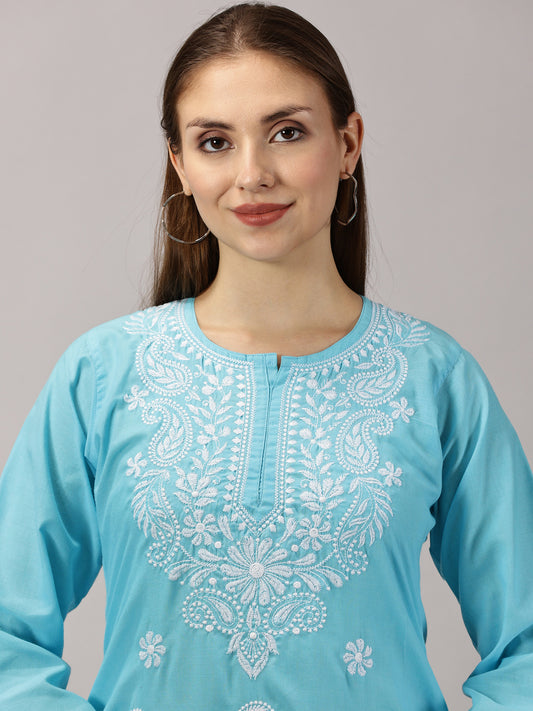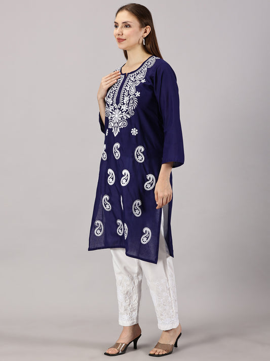 Experience the beauty of Lucknowi Chikan Kari Kurtis. Made from soft cotton fabric and delicately embroidered with fine machine work, these kurtis are perfect for women's regular wear.