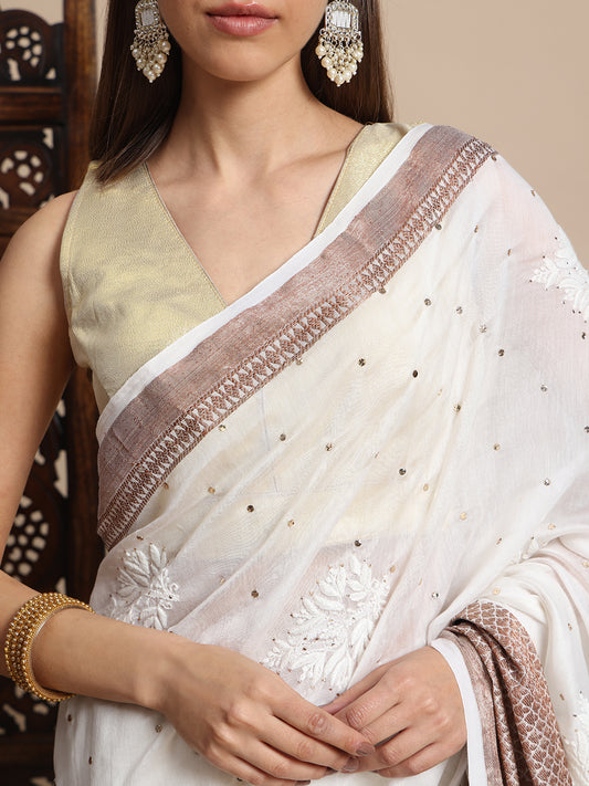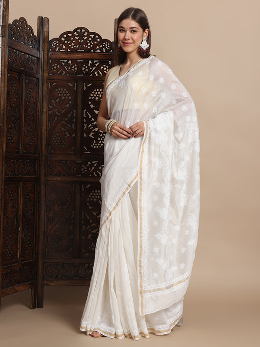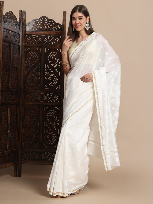 Exclusive Tepchi Hand-Made Chikankari Saree