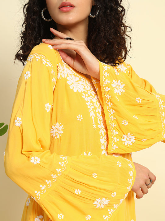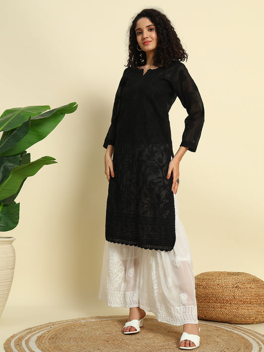 - Embroidery Style:Chikankari (traditional hand embroidery from Lucknow, India),